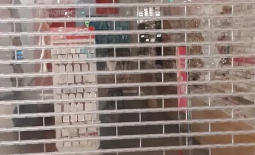 Nettoyage extérieur du rideau en plexiglas du magasin, avec produits non abrasifs spécifiquement